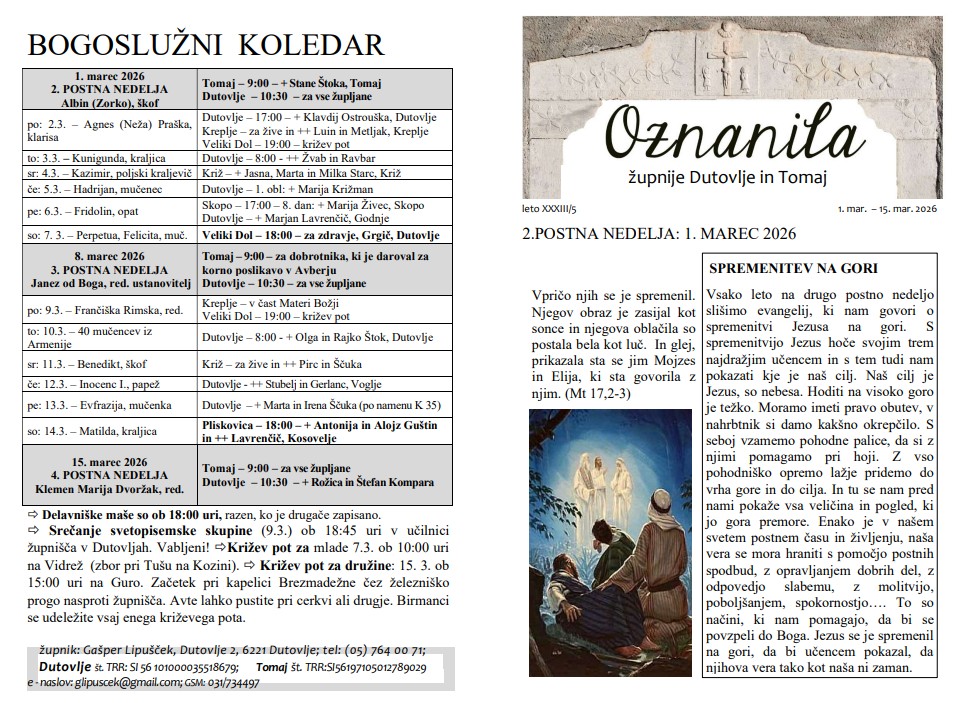 Celotna različica aktualnih oznanil je dostopna na spodnji povezavi.